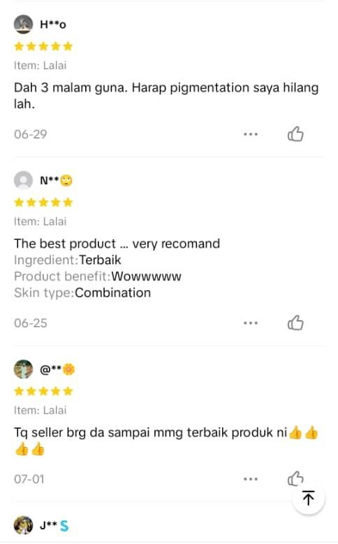 KEDUA : Anda boleh je cari alternatif lain kat TikTok, Shopee dan tempat lain yang jual produk murah tak berkualiti. Boleh beli produk fake yang berlambak kat pasaran. Tapi, macam biasa. Anda akan tersalah pilih produk. Lepastu result yang anda nampak. Tak banyak sangat perubahan. Kami nak nasihatkan anda. Sila pastikan yang anda gunakan produk ORIGINAL yang dijamin selamat dan berkesan.
