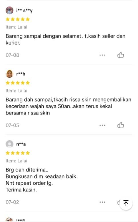 Alhamdulillah lebih 13,246+ pengguna berpuas hati menggunakan produk Rissa Skin. Ini adalah sebab kenapa REPEAT ORDER SANGAT TINGGI!
